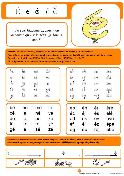 Objectif : être capable de lire des syllabes et des mots avec la lettre É combinée à toutes les consonnes.